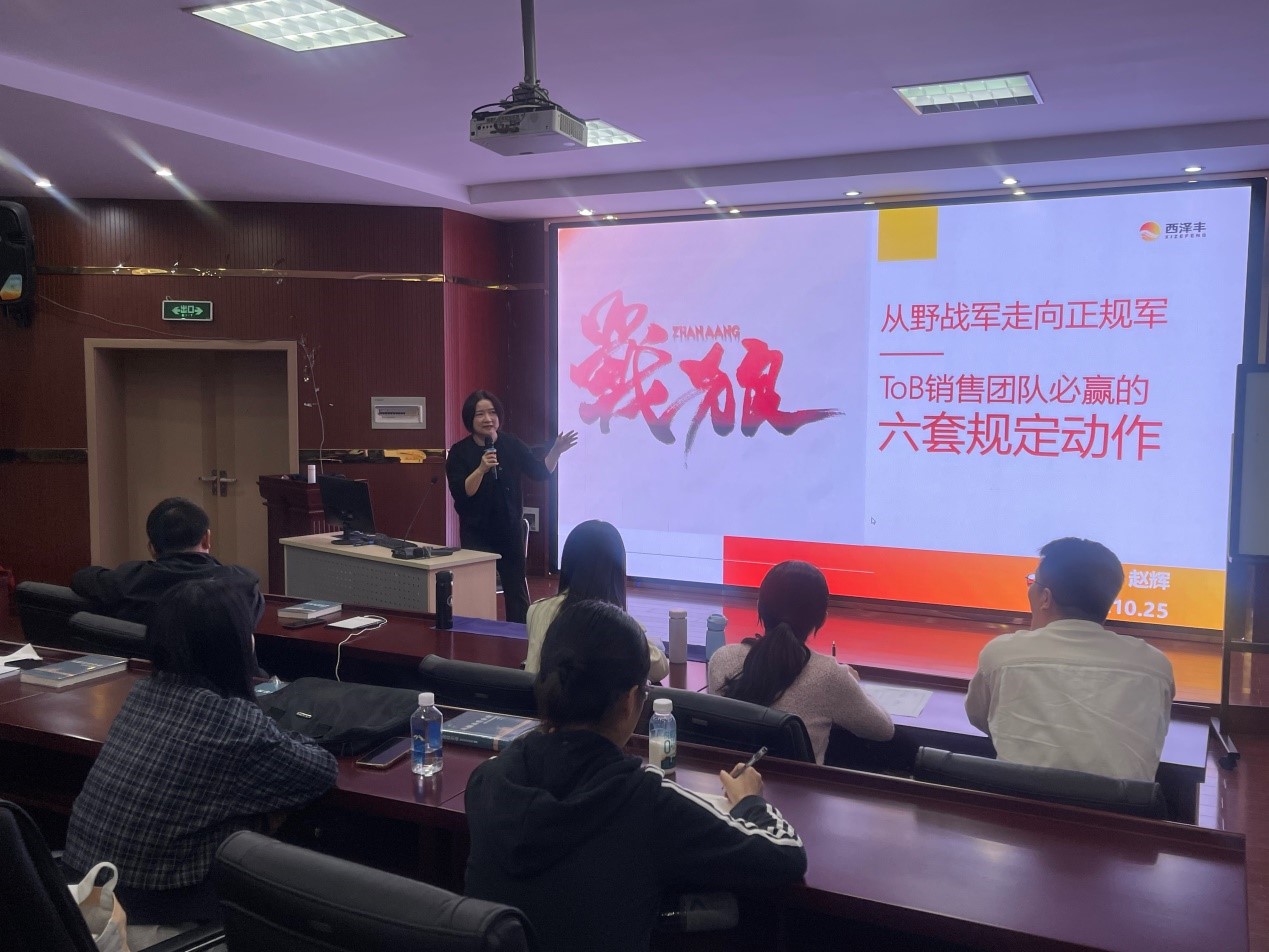 2025年10月25日下午,浙江财经大学2024级MBA1班齐聚聚业沙龙,组织开展了一场聚焦企业销售团队专业化建设的精彩讲座。本次讲座特邀西泽丰管理咨询创始人、杭州市创业导师赵辉,围绕“To B销售团队规模化发展”展开深度分享,主题为《从野战军走向正规军——To B销售团队必赢的六套规定动作》。