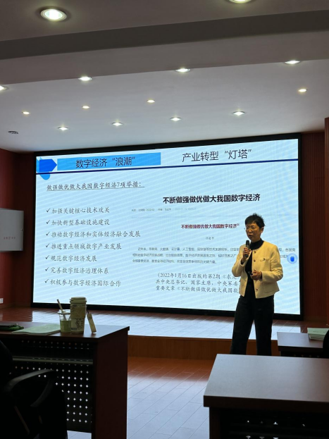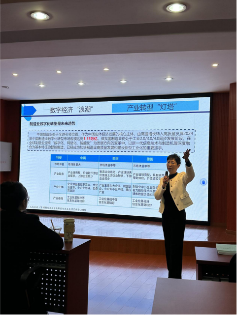 讲座伊始,李教授系统梳理了全球数字经济的发展脉络与最新态势。她引用华为与牛津经济研究院的研究数据,生动阐释了数字技术带来的“溢出效应”,并指出到2025年,数字经济预计将为全球GDP额外贡献1.7万亿美元。她强调,在“+智能”新时代背景下,数字经济已成为推动经济复苏的重要引擎。中国在这一浪潮中表现尤为突出,不仅拥有全球超过40%的“灯塔工厂”,更通过《“十四五”数字经济发展规划》绘制了清晰的发展蓝图,从数字基础设施优化到数据要素价值释放,全方位构建数字经济发展体系。